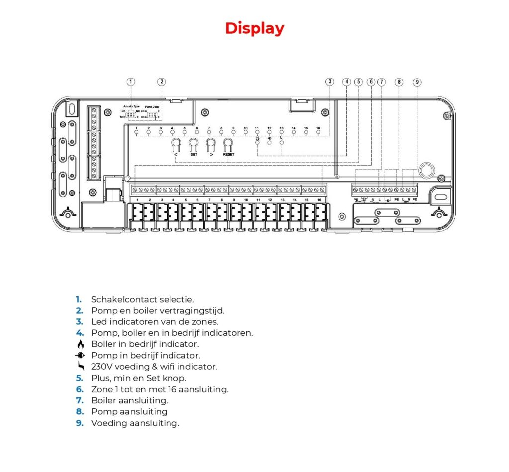 De CV ketel en pomp kunnen bedraad worden aangesloten op de LINK